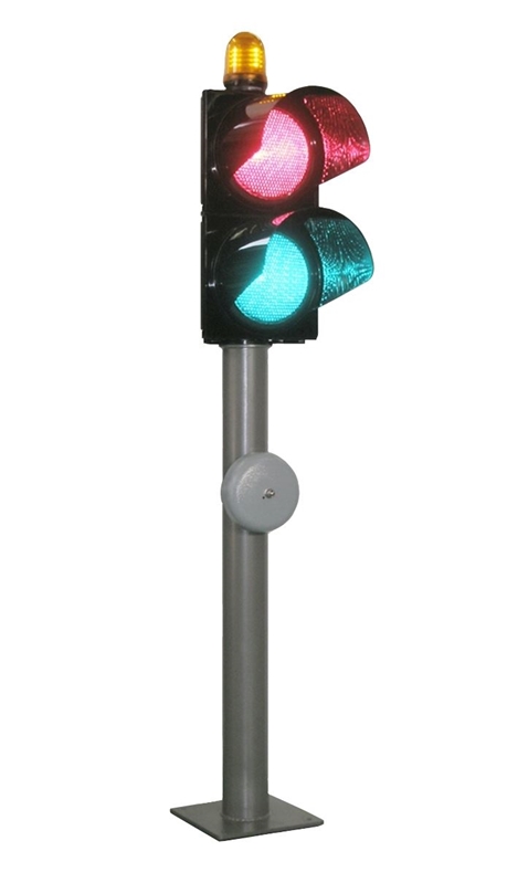 El modelo TOLLPASS es un conjunto especialmente indicado para el control de puestos de peaje controlados por barreras. Se compone de un semáforo de 2 focos (rojo-verde), con una campana acústica y un pilto rotativo superior.
